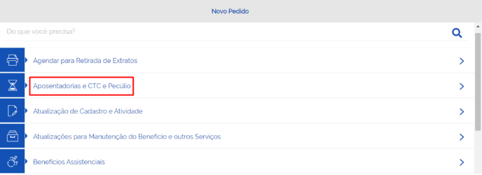Depois, em “Aposentadorias e CTC e Pecúlio”:
